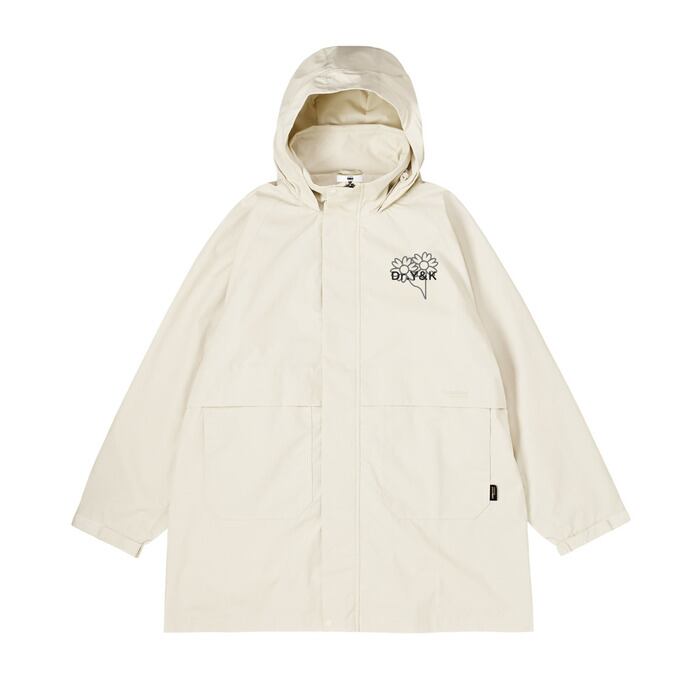 フロントはジッパーとマジックテープフラップの二重構造、フロント両サイドにフラップタイプのマジックテープ付きポケットと通常のサイドポケット2つと収納性も抜群。必要に応じてフードを襟元に収納できるデザインになっています。